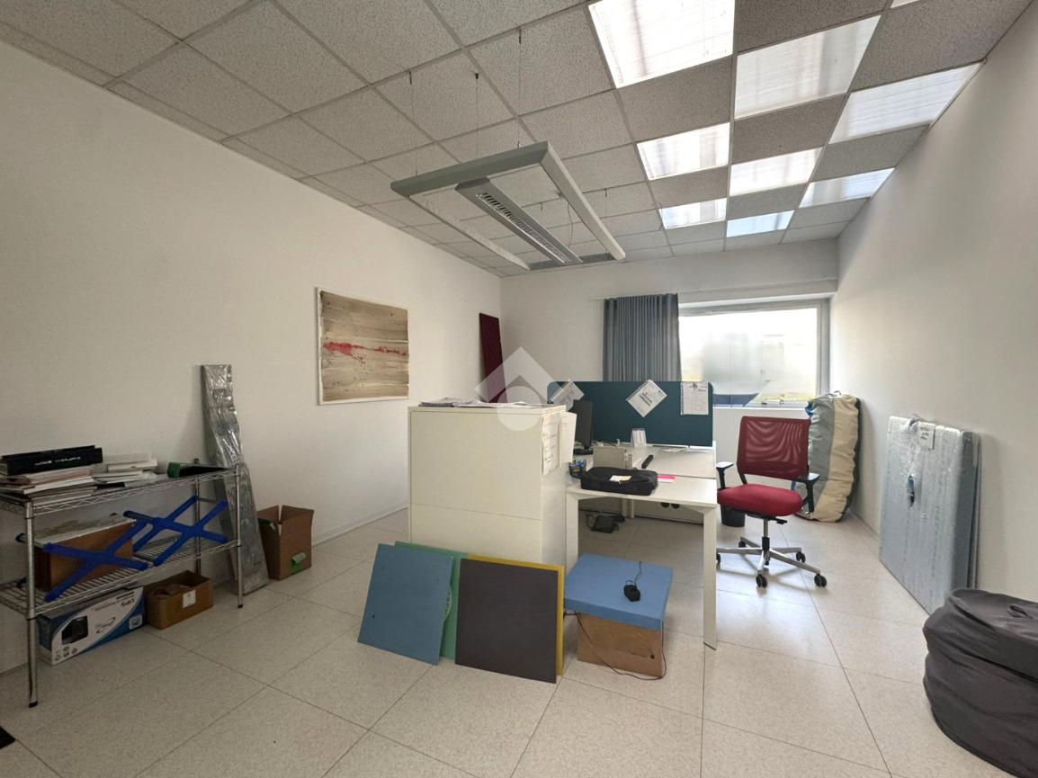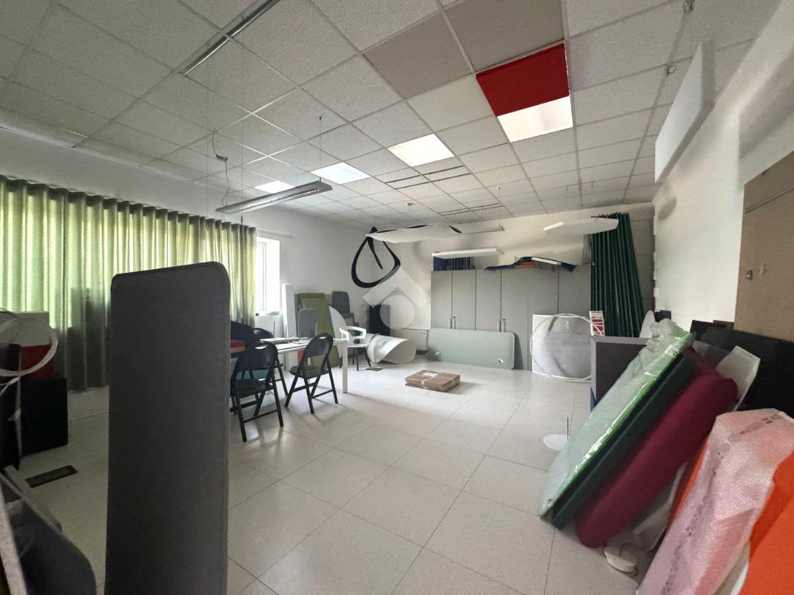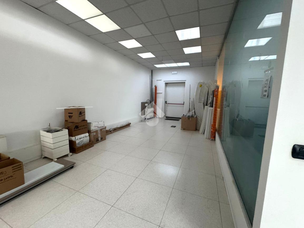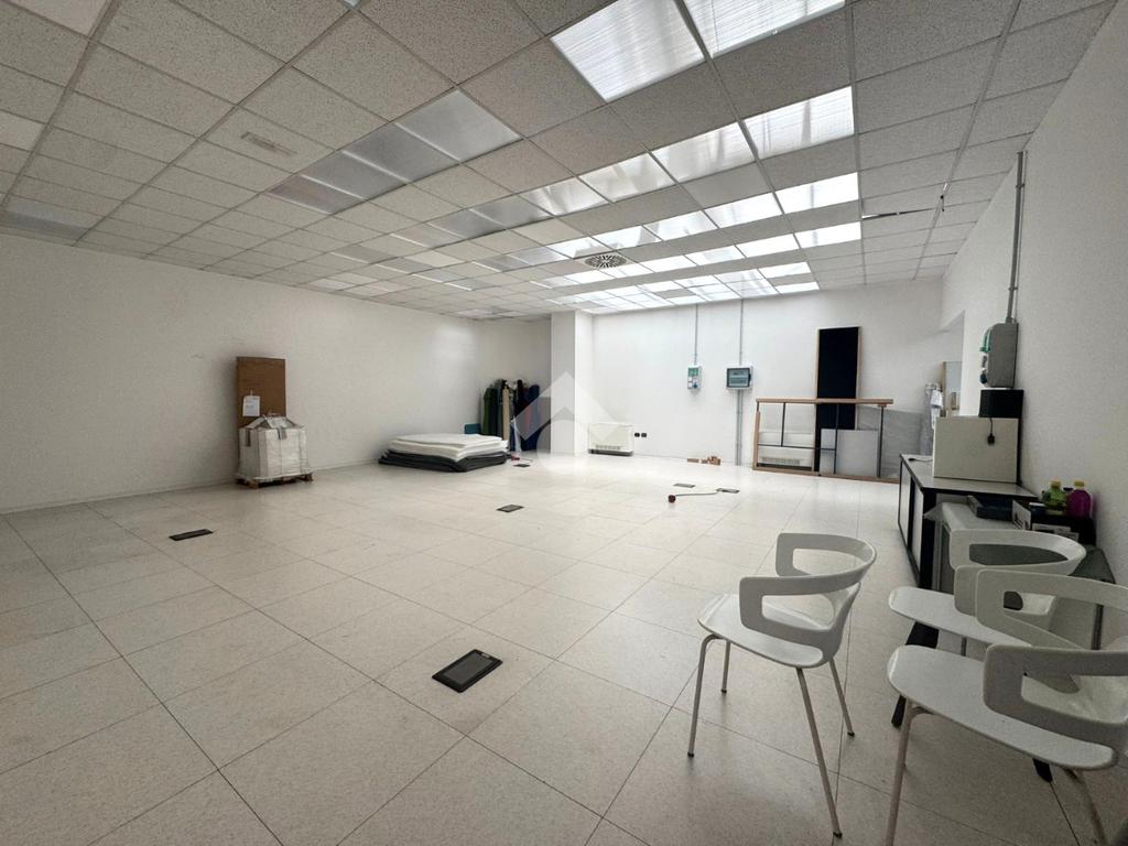 Il capannone internamente si sviluppa con una zona dedicata all’ingresso che porta agli uffici, serviti da doppi servizi, uomo e donna.