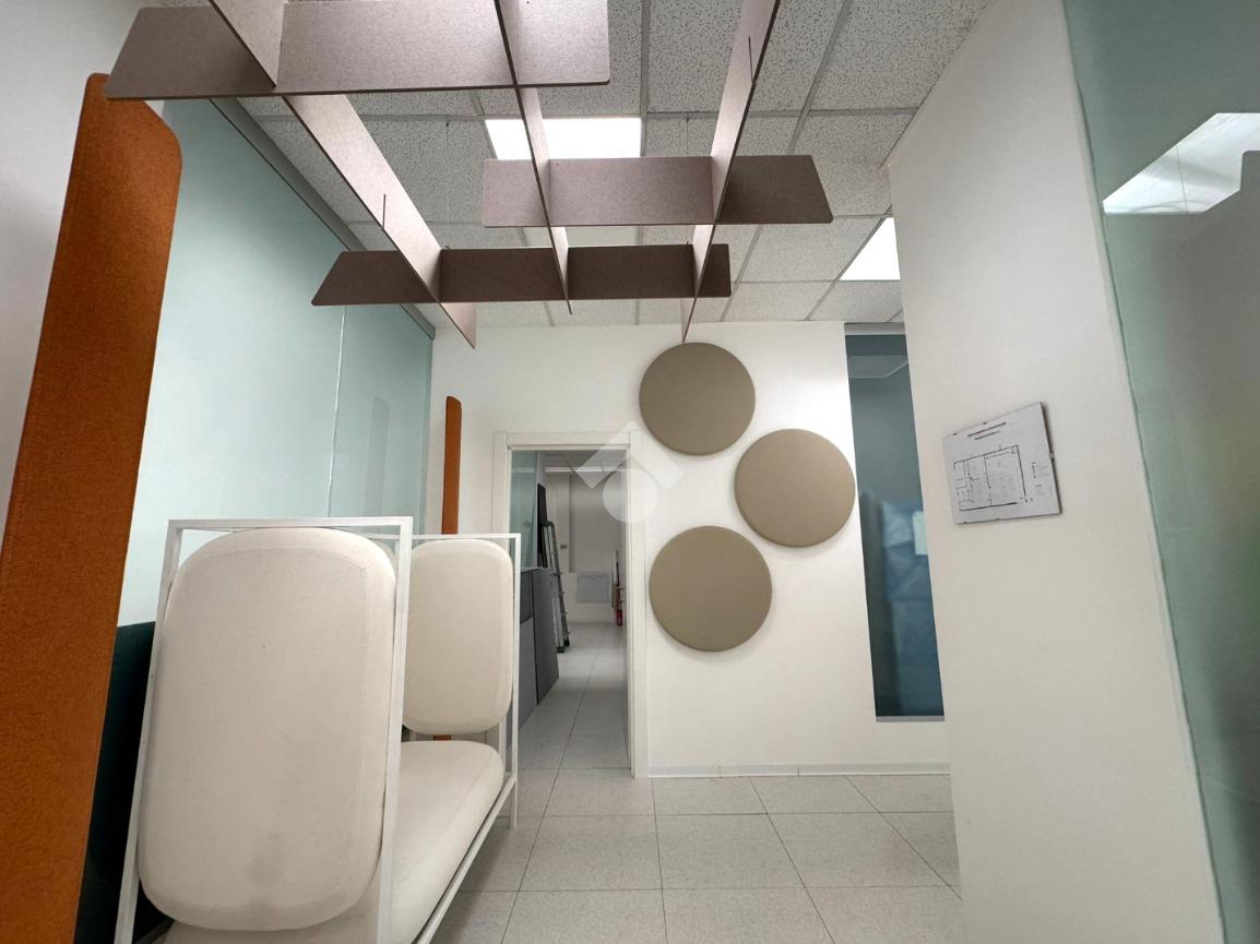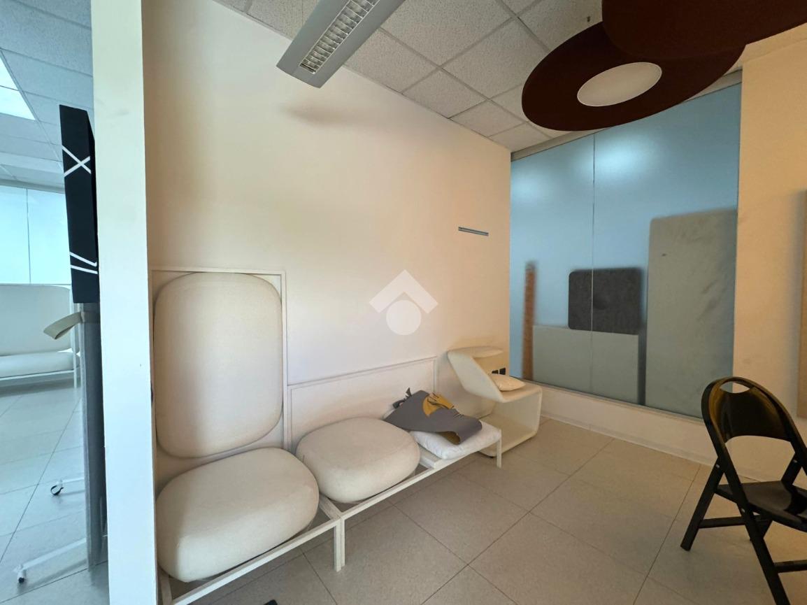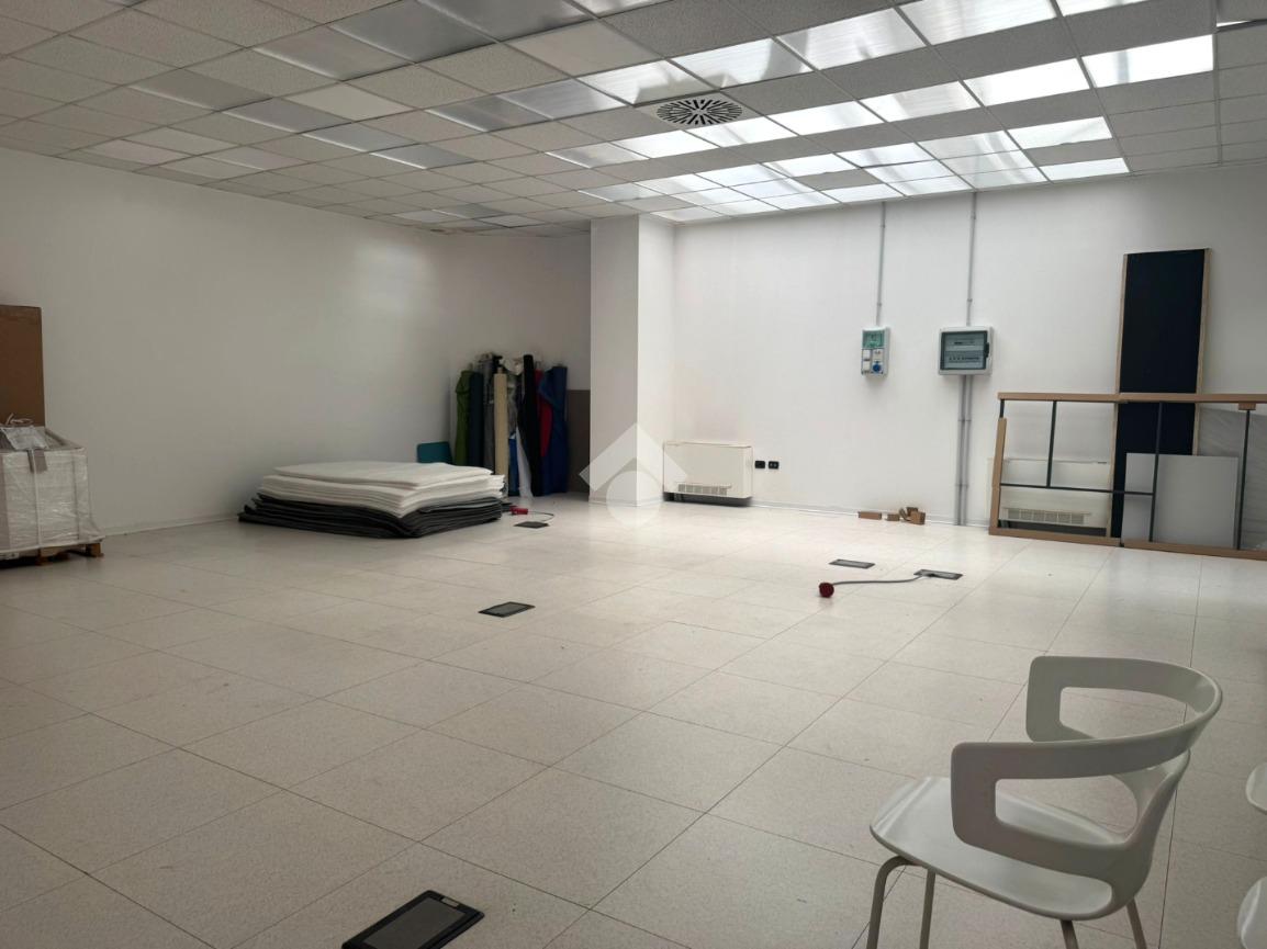 Il capannone internamente si sviluppa con una zona dedicata all’ingresso che porta agli uffici, serviti da doppi servizi, uomo e donna.