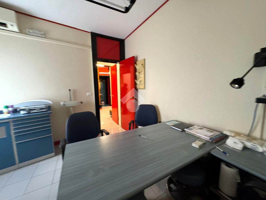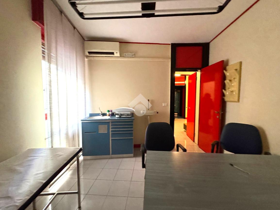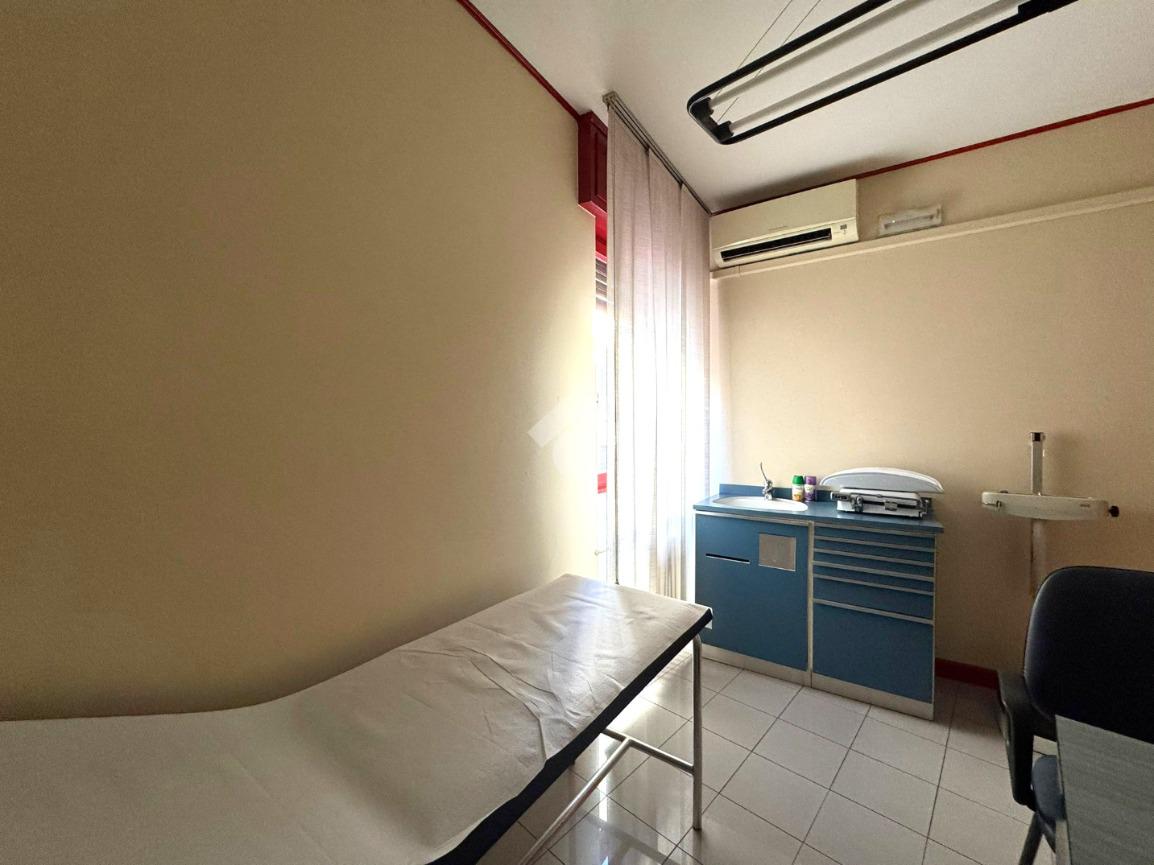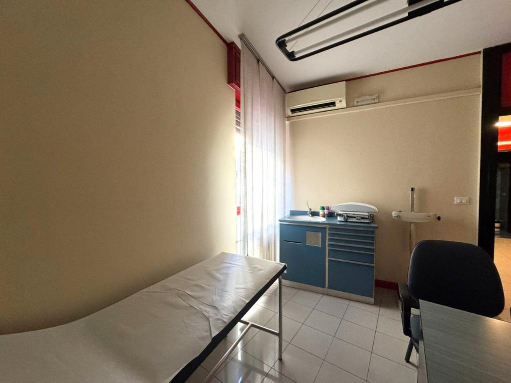 PARTICOLARITA’ e DESCRIZIONE: l’ufficio proposto è posto al primo piano, già arredato, con ampia reception, nella stanza stanza sono presenti lettino, scrivania con sedia e mobiletto porta documenti.